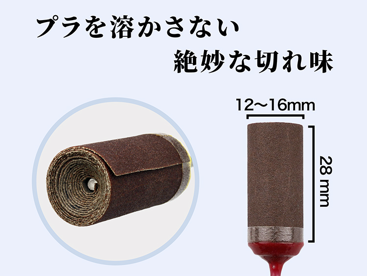 金属ビットのように食い込まず、必要な分だけ削れる“やさしい当たり”。日本製ペーパーならではの、均一な削れ味が続きます。